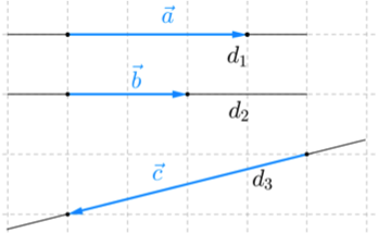 Ví dụ. Giá của $\vec a,\vec b,\vec c$ lần lượt là đường thẳng ${d_1},{d_2},{d_3}$