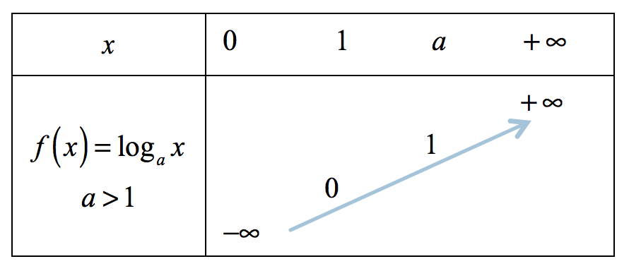 $ \bullet $ Giới hạn $\mathop {\lim }\limits_{x \to + \infty } f\left( x \right) = \mathop {\lim }\limits_{x \to + \infty } {\log _a}x = + \infty .$