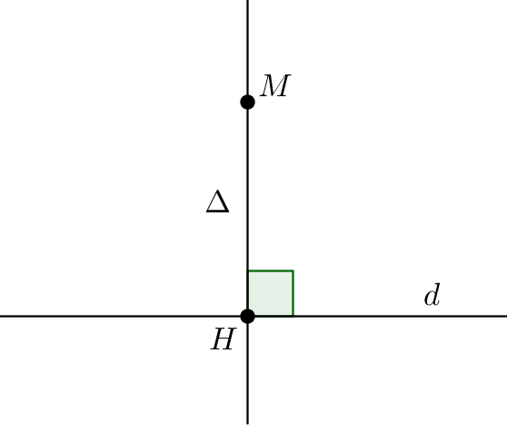 Hình chiếu vuông góc của một điểm lên đường thẳng. Trong măt phẳng $Oxy$ để tìm toạ độ của điểm $H$ là hình chiếu của $M$ lên đường thẳng $d$ ta có thể tiến hành các bước như sau