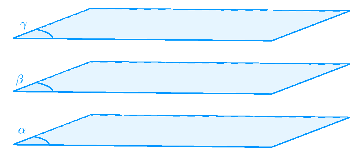 Mệnh đề 2. Nếu hai mặt phẳng phân biệt $(\alpha)$ và $(\beta)$ cùng song song với mặt phẳng $\left( \gamma \right)$ thì $\left( \beta \right)//\left( \alpha \right)$.