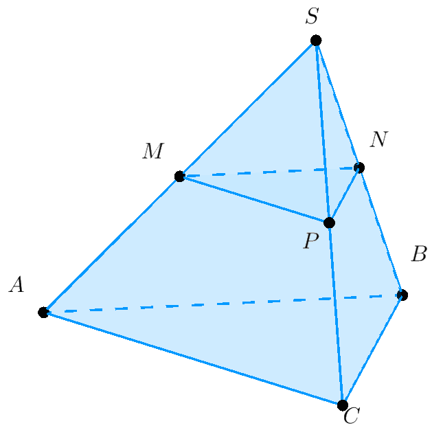 Giải. Từ giả thiết ta có $MN$ là đường trung bình của $\Delta SAB. $