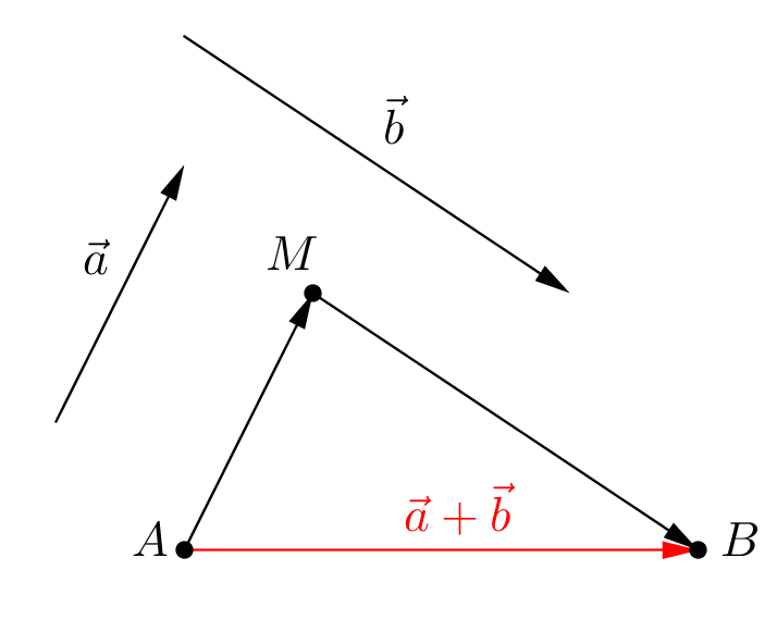 Khi đó $\vec a + \vec b = \overrightarrow {AM} + \overrightarrow {MB} = \overrightarrow {AB} .$