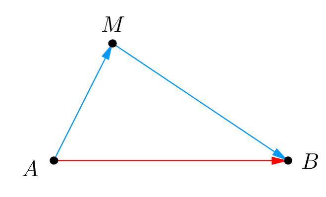 Trong mục này ta sẽ bàn đến sự biểu diễn của một vector qua các vector khác. Ta thường dùng đến hai quy tăc: quy tắc ba điểm và quy tắc hình bình hành. Quy tắc ba điểm. Trong không gian cho hai điểm $A$ và $B$. Khi đó với điểm $ M $ bất kì ta luôn có $$\overrightarrow {AM} + \overrightarrow {MB} = \overrightarrow {AB}.$$