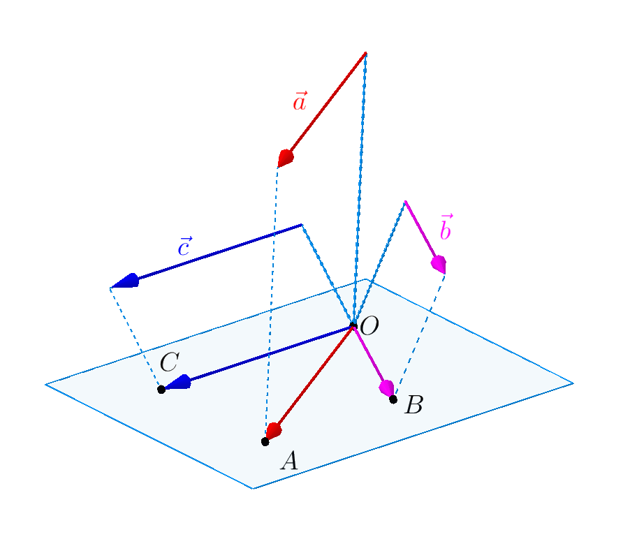 Như vậy các vector $\vec a,\vec b,\vec c$ đồng phẳng nếu các vector này cùng thuộc hoặc song song với một mặt phẳng nào đó.