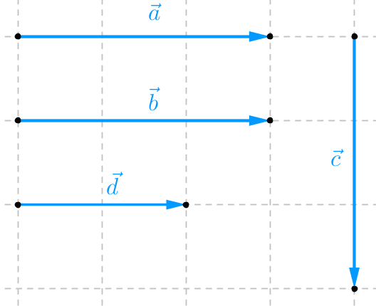 $ \bullet $ Mặc dù $\vec a$ và $\vec d$ cùng phương nhưng do $\left| {\vec a} \right| \ne \left| {\vec d} \right|$ nên $\vec a \ne \vec d.$