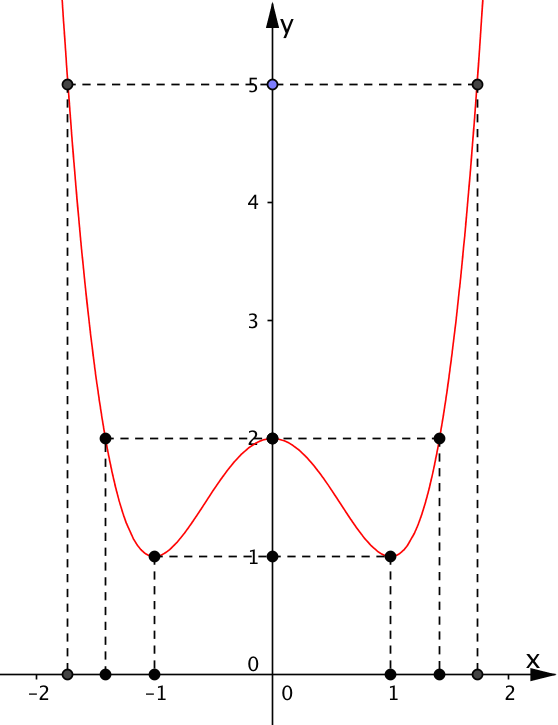 Ví dụ 1. Khảo sát và vẽ đồ thị hàm số sau $y = {x^4} - 2{x^2} + 2$.